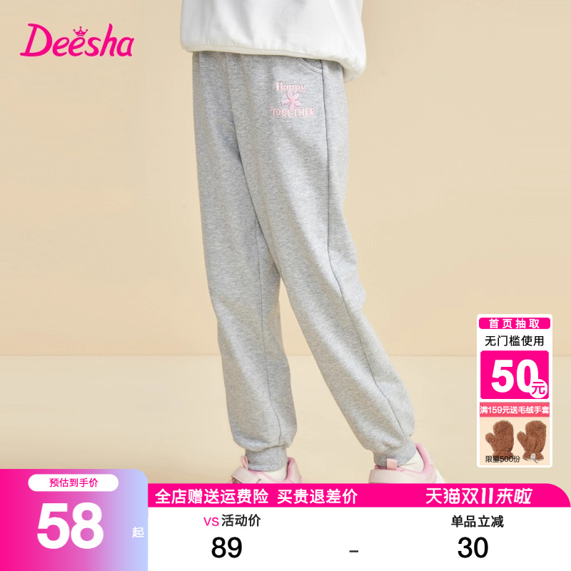 笛莎女童裤子春装新款中大童卫裤儿童休闲运动裤长裤春秋薄款迪莎