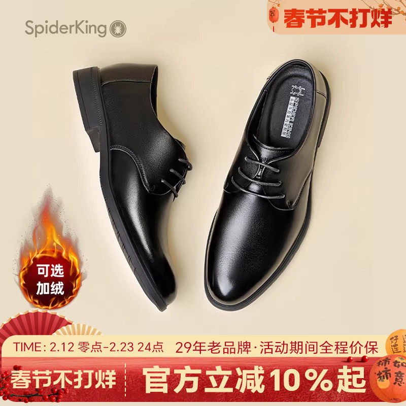 蜘蛛王皮鞋男士2025新款冬季真皮商务正装系带男鞋结婚新郎德比鞋