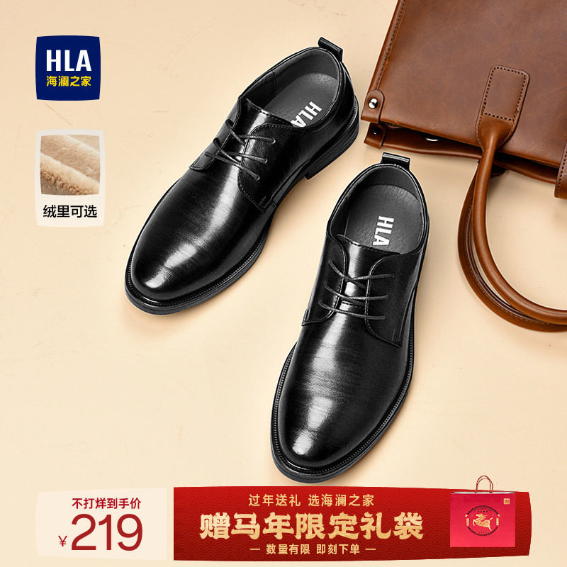 HLA/海澜之家皮鞋男新款冬季商务正装真皮软底皮鞋增高加绒结婚鞋