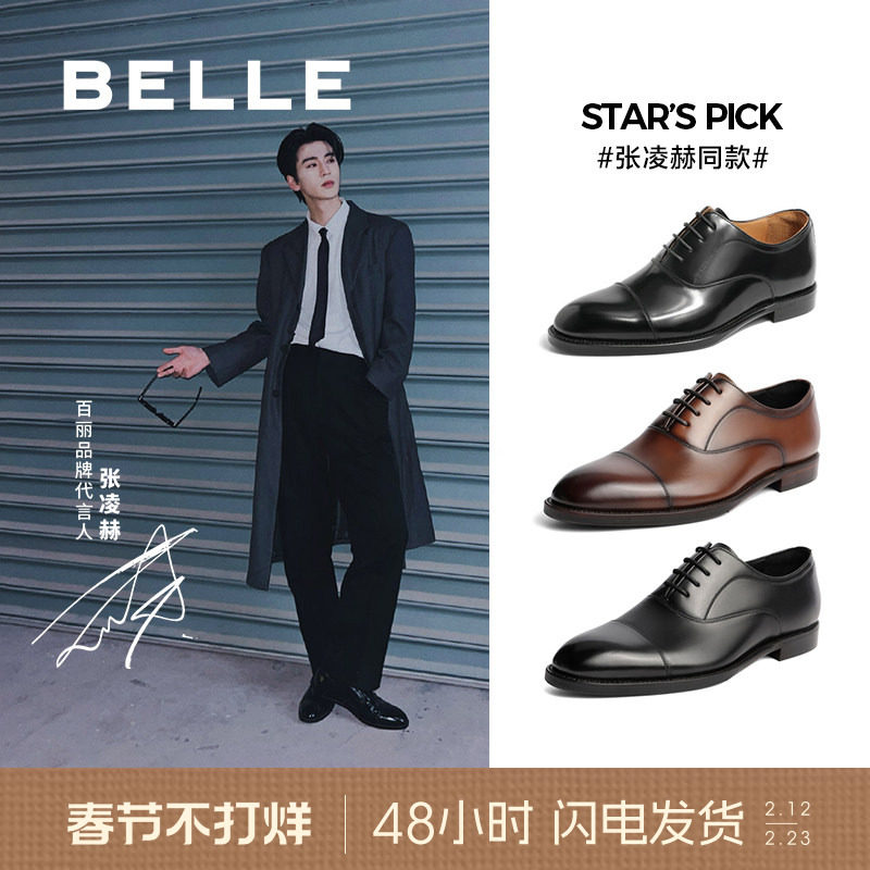 张凌赫同款百丽鞋子男商务正装牛津皮鞋男内增高三接头婚鞋59736