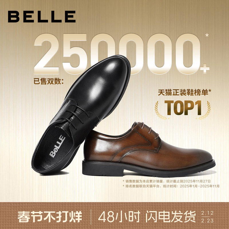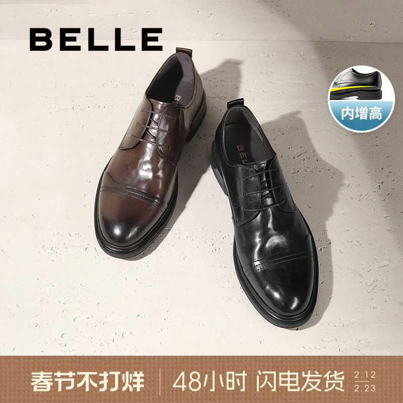 百丽男士商务正装真皮鞋男春季新款增高休闲德比新郎婚鞋B3GK3CM1