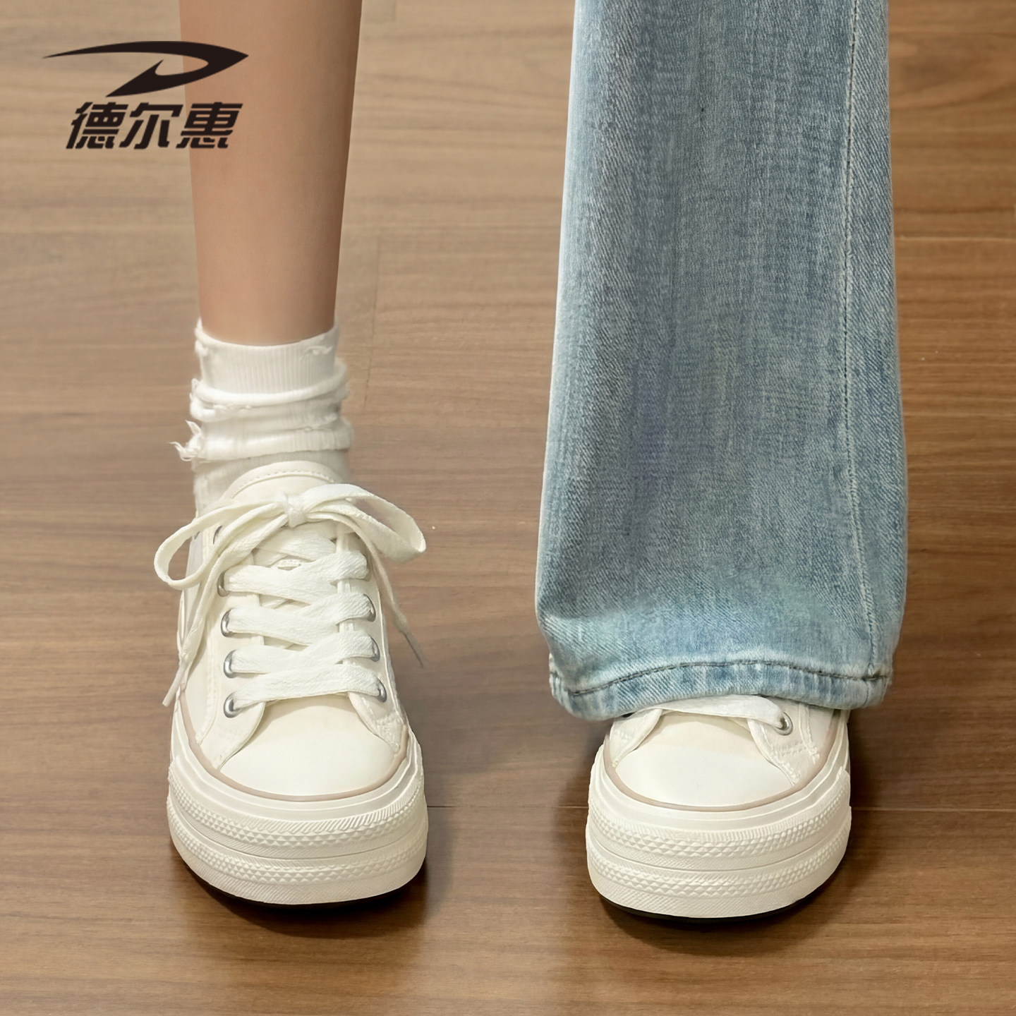 - 白色低帮帆布鞋女学生
