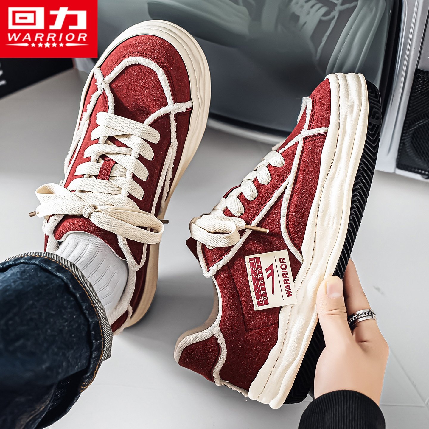 回力酒红帆布男鞋春季低帮转运色面包鞋运动休闲增高复古厚底板鞋