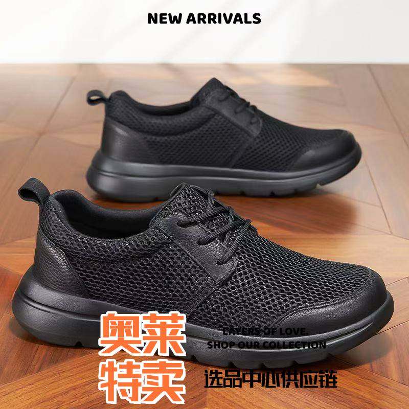 男鞋夏季透气2025新真皮运动鞋多功能软底休闲鞋男士除臭剂厚底运