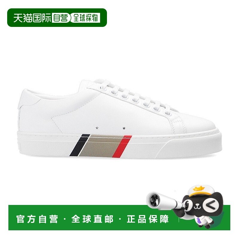 自营欧洲直邮奥莱BURBERRY/博柏利皮革男士白色条纹装饰休闲鞋运