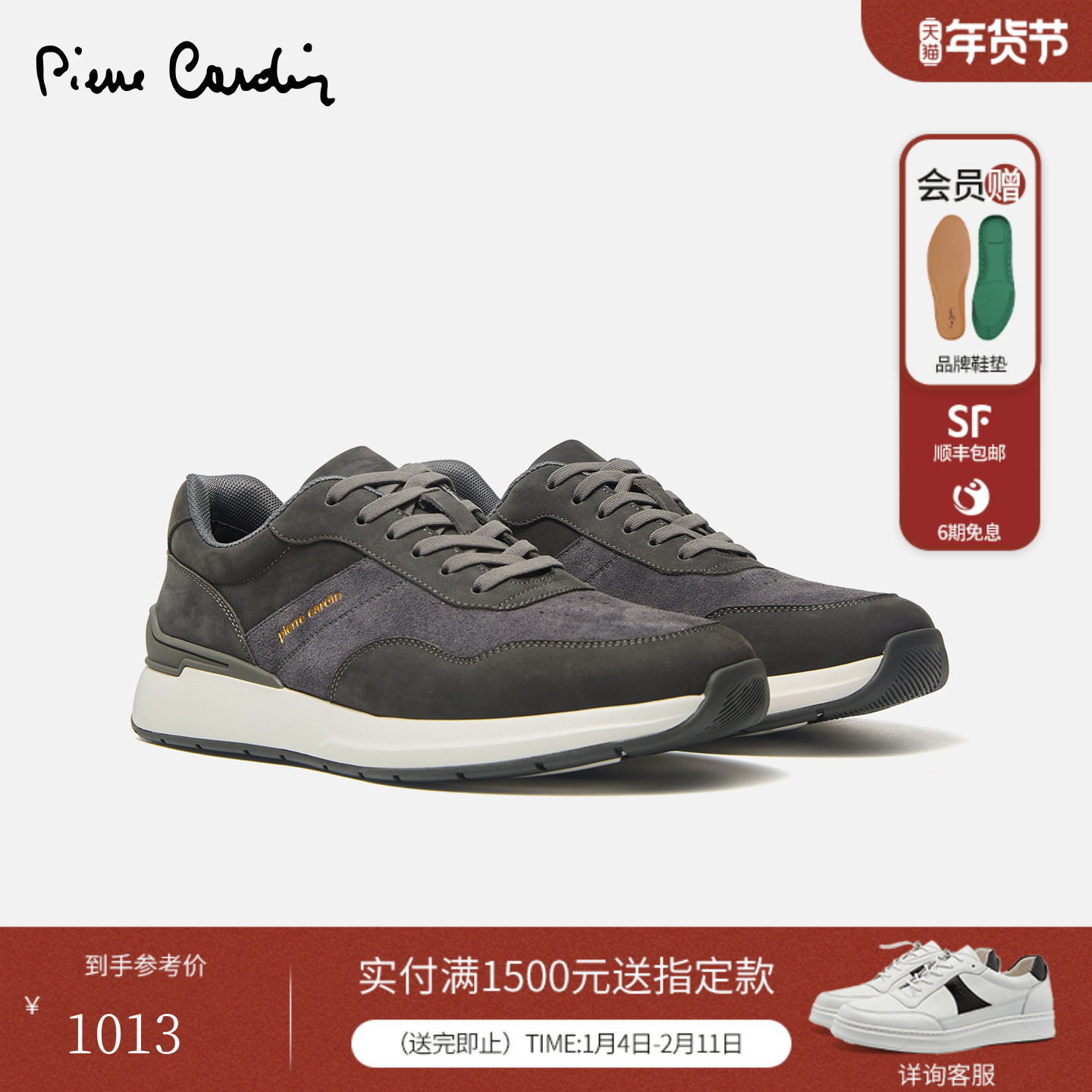 皮尔卡丹男鞋真皮透气系带运撞色运动潮百搭软超轻阿甘鞋休闲鞋男