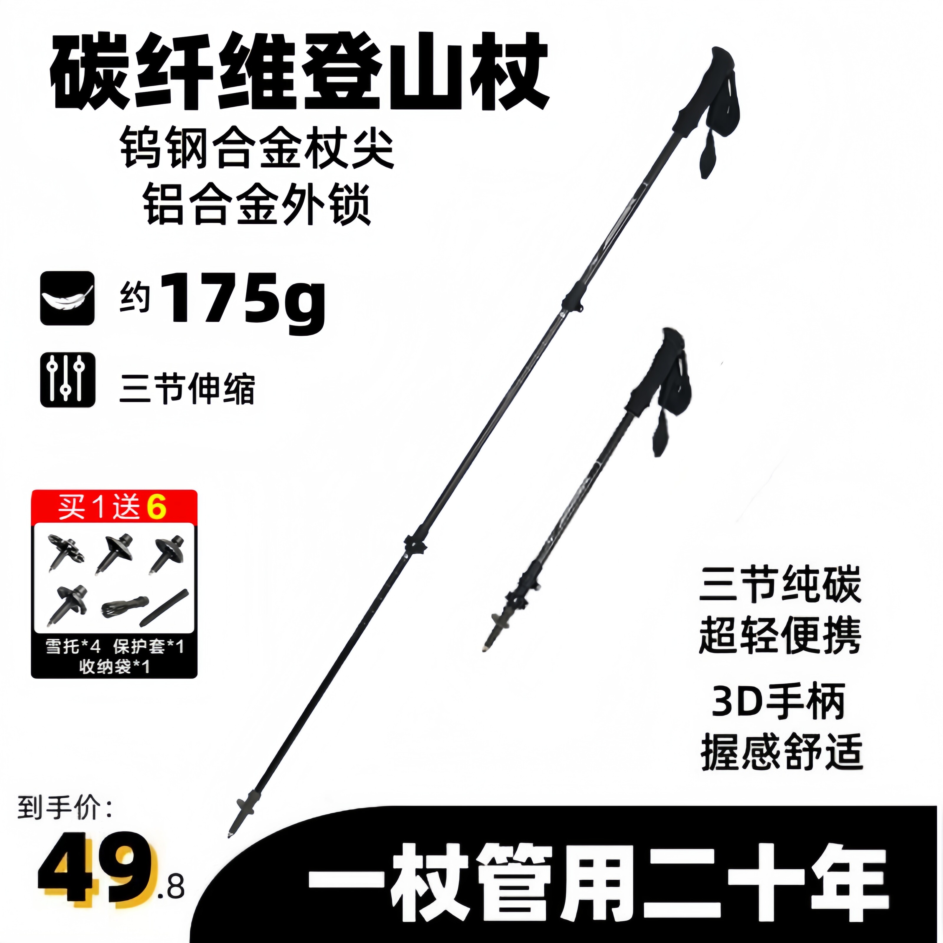 - 登山杖 碳素 超轻
