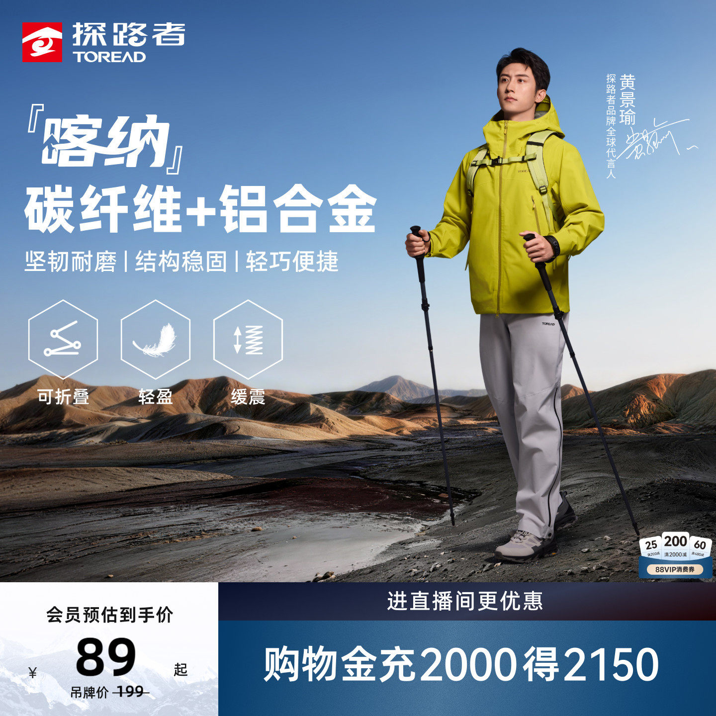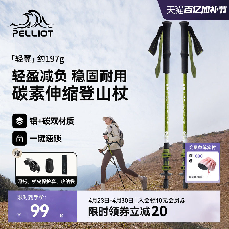 【轻翼】伯希和户外登山杖女碳纤维伸缩手杖专业徒步装备轻便拐杖