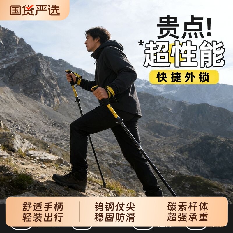 专业户外登山杖爬山拐杖男款手杖女款便携式徒步棍碳纤维超轻伸缩