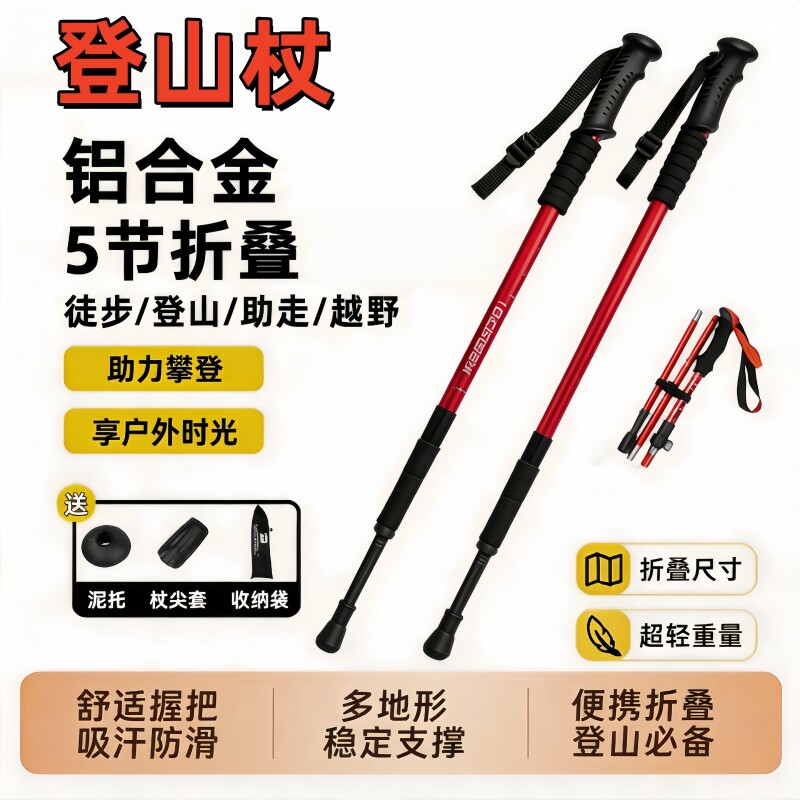 户外专业登山杖手杖折叠爬山用拐杖超轻便伸缩徒步装备拐棍铝合金