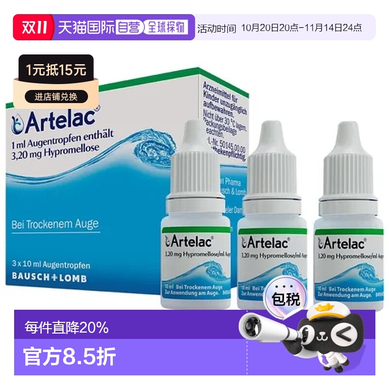 欧洲直邮Artelac玻尿酸滴眼液 3支/10ml滋润眼睛干眼症缓解眼疲劳