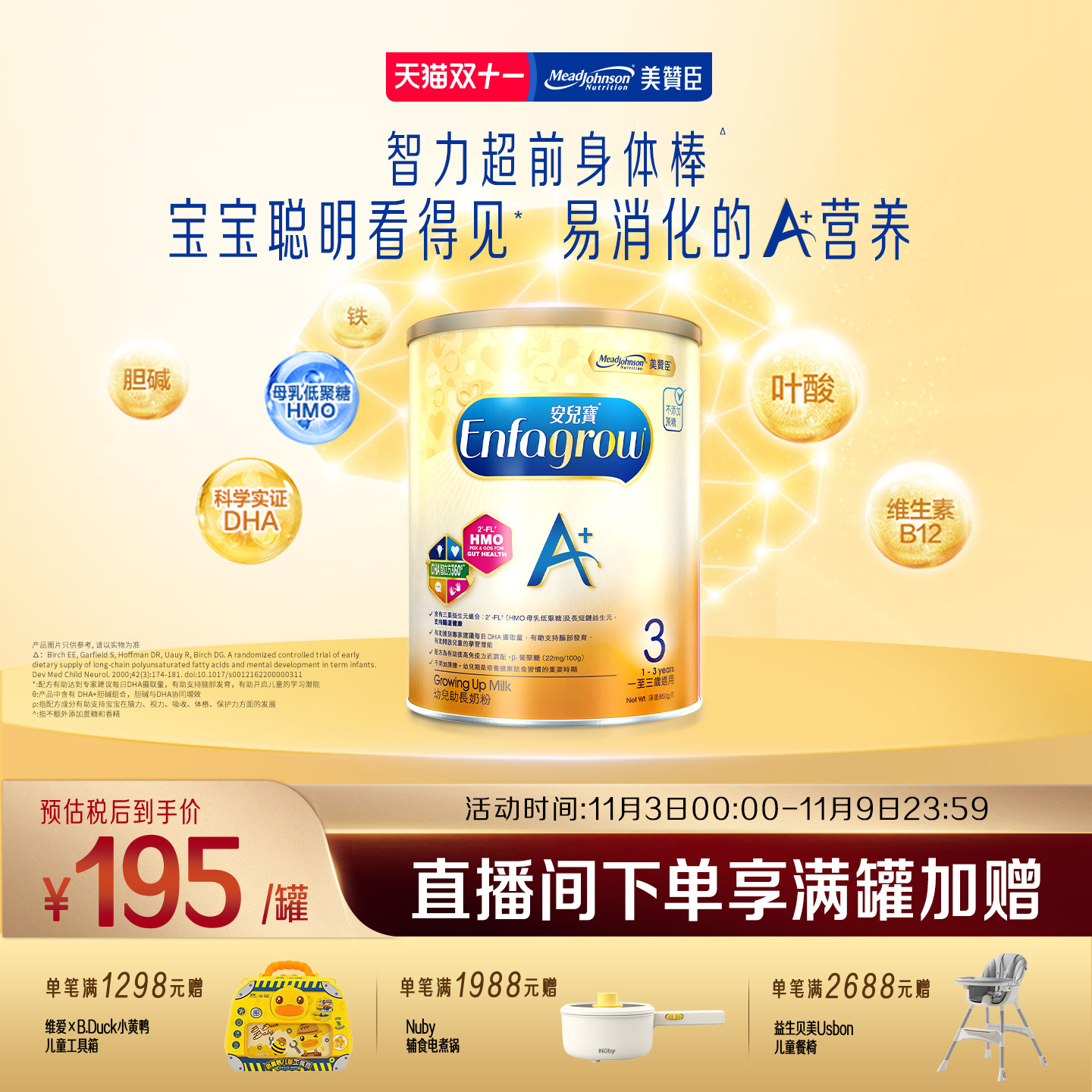 【升级新国标】美赞臣铂睿A2蛋白幼儿婴儿配方奶粉3段(1-3岁)单罐