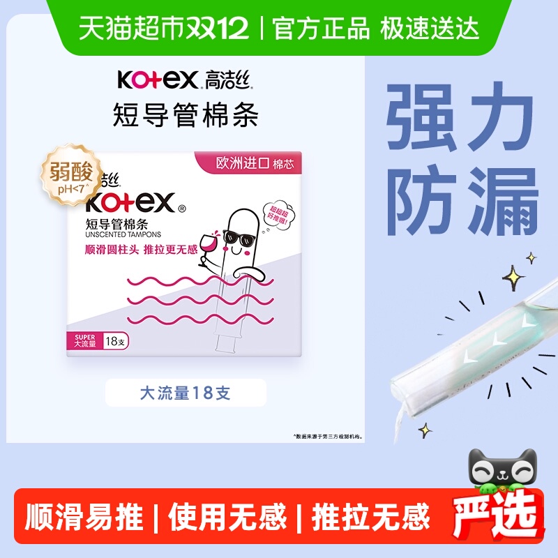 高洁丝棉条短导管式卫生棉条无感内置卫生巾普通流量/大流量可选