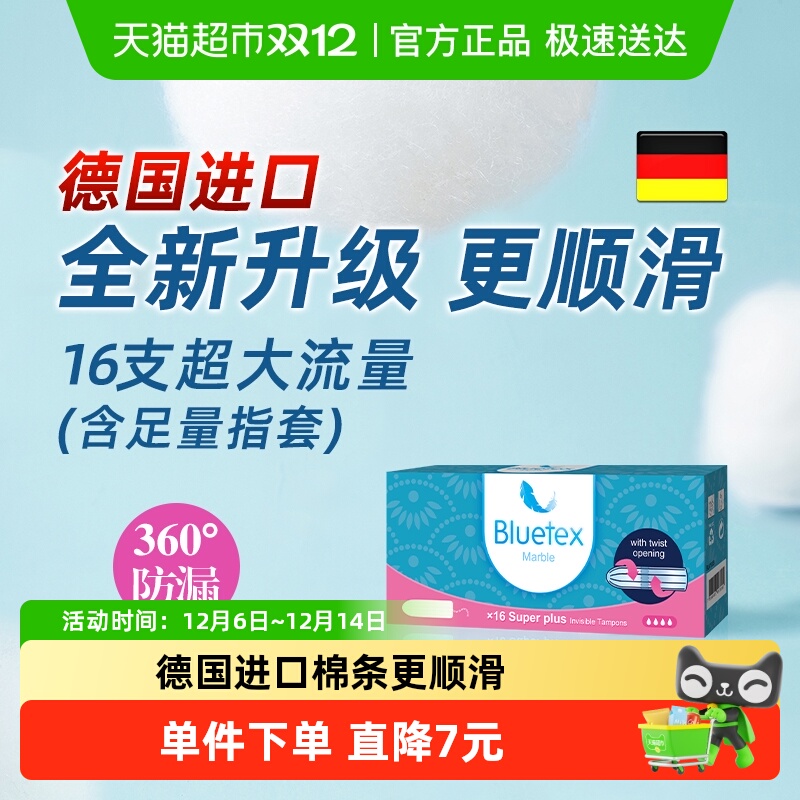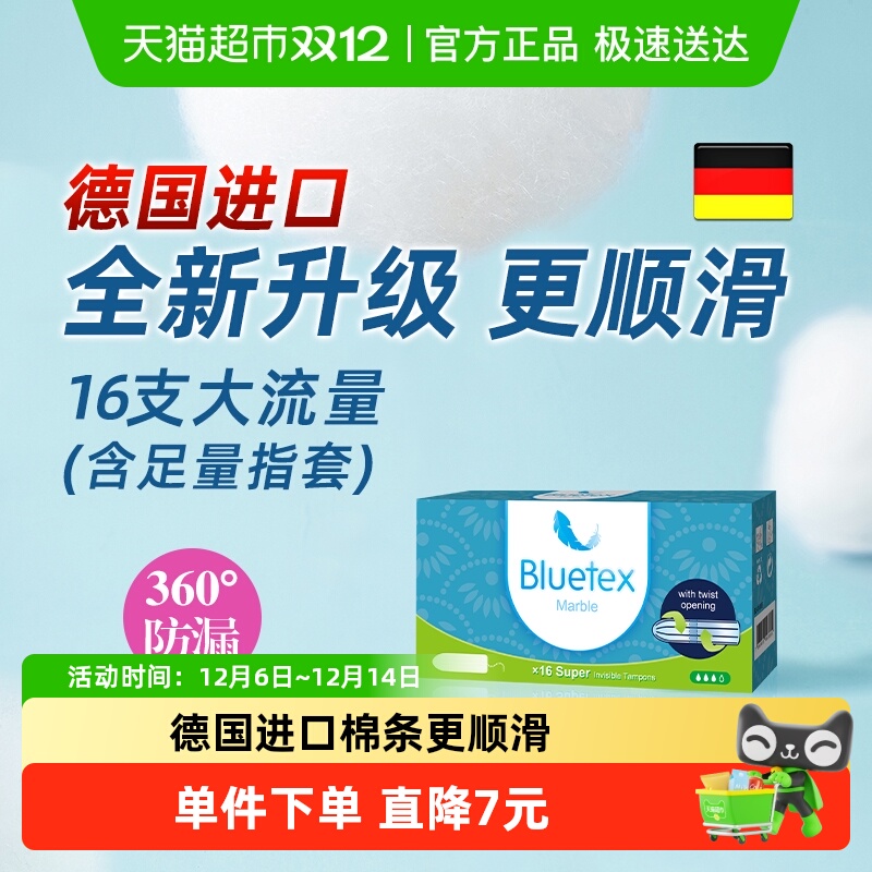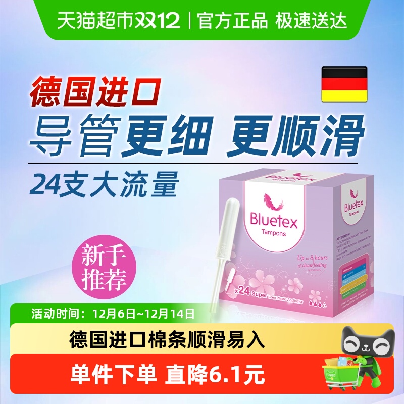 Bluetex蓝宝丝德国进口长导管卫生棉条超大流量导管式内置卫生巾