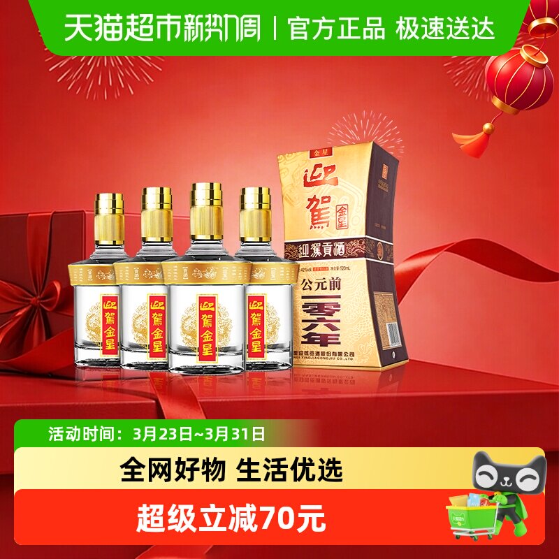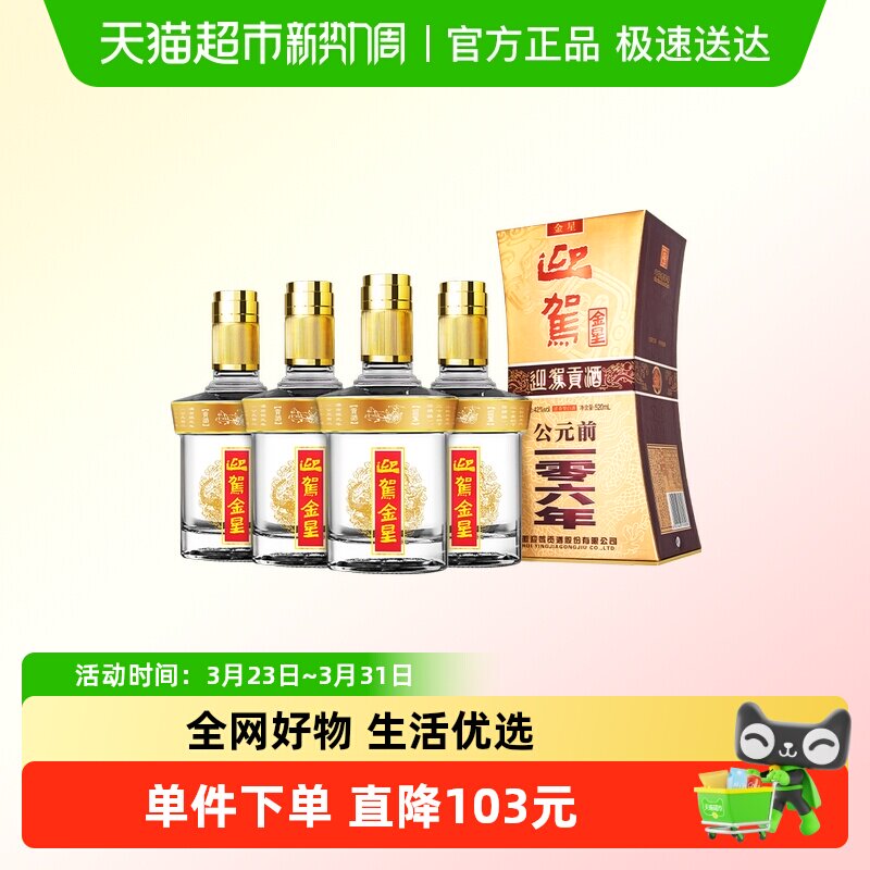 迎驾贡酒 金星浓香型白酒42度520ml*4瓶 整箱装 自饮自酌聚会宴请