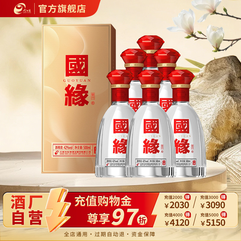 今世缘国缘对开柔雅型白酒42度500ml*6瓶婚庆喜宴(非整箱)