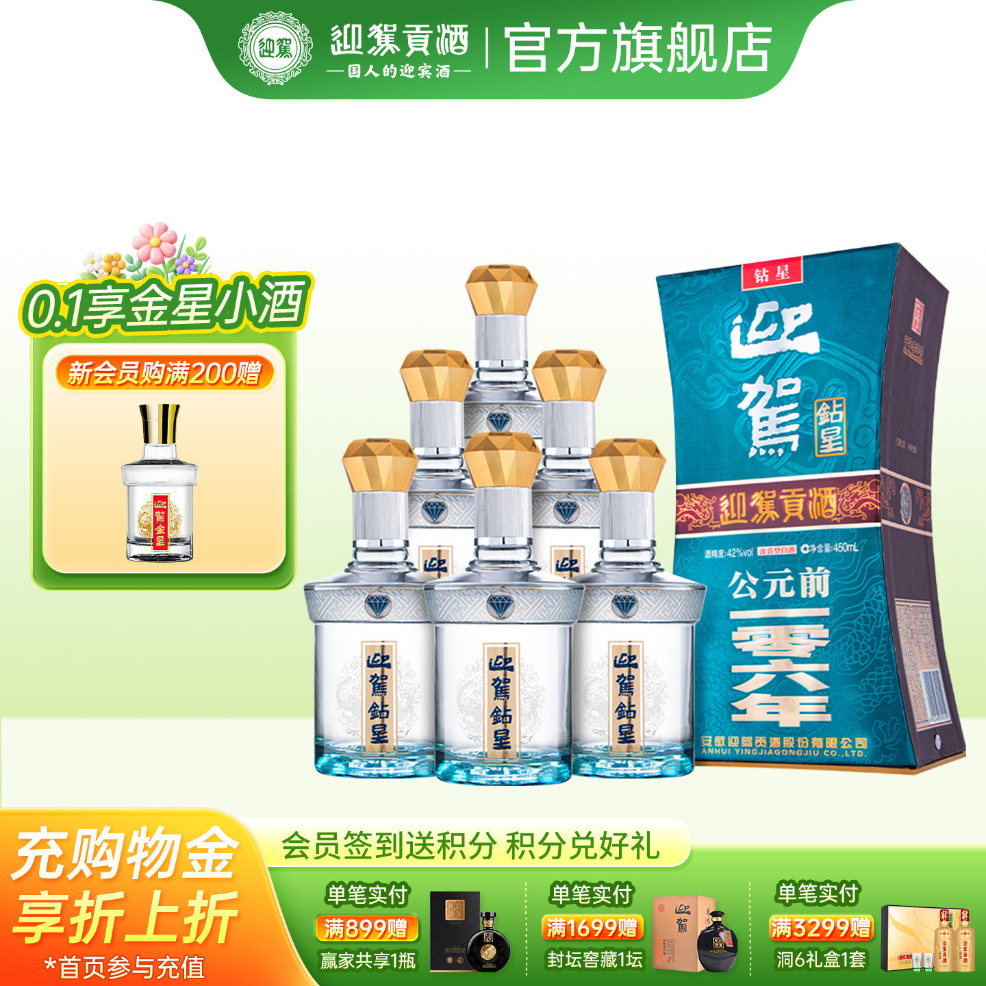 【官方旗舰】迎驾贡酒迎驾钻星42度450ml*6国产白酒整箱酒水