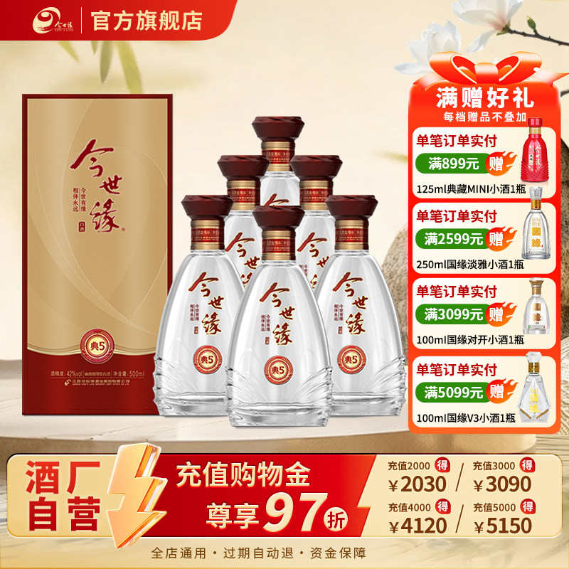 【酒厂自营】今世缘42度典藏5浓香型白酒整箱500ml*6节日送礼