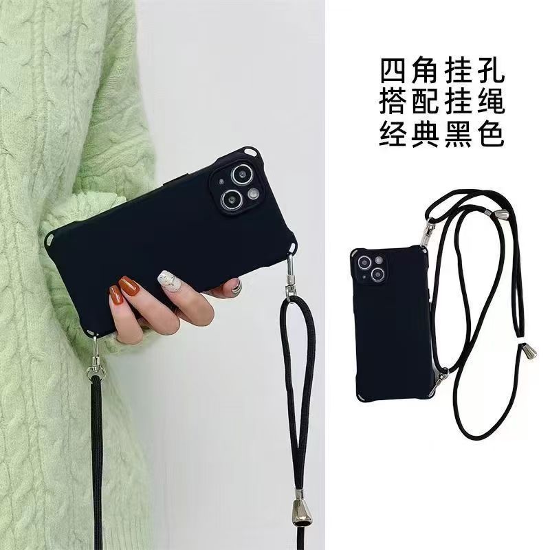 简约亮黑17promaxiPhone16斜挎手机壳15pro苹果141312/11xsmaxXR7/8plus挂绳16e全包四角孔软