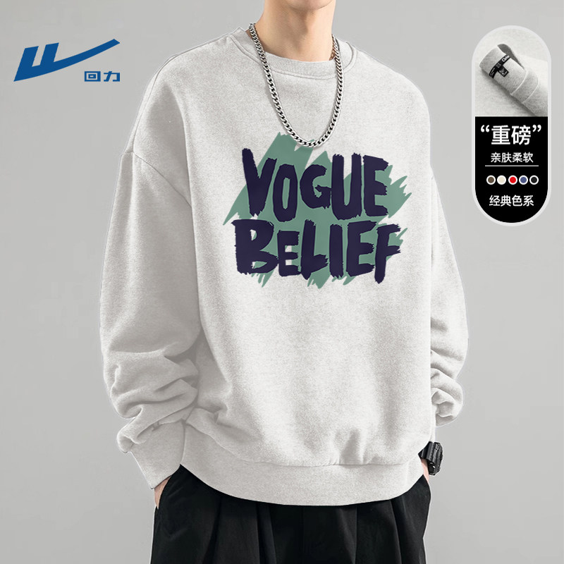 回力灰色卫衣男款青少年春季新款薄款学生休闲宽松上衣圆领长袖男