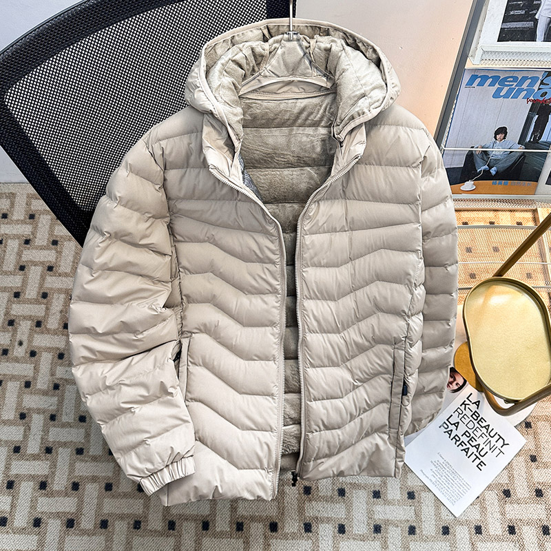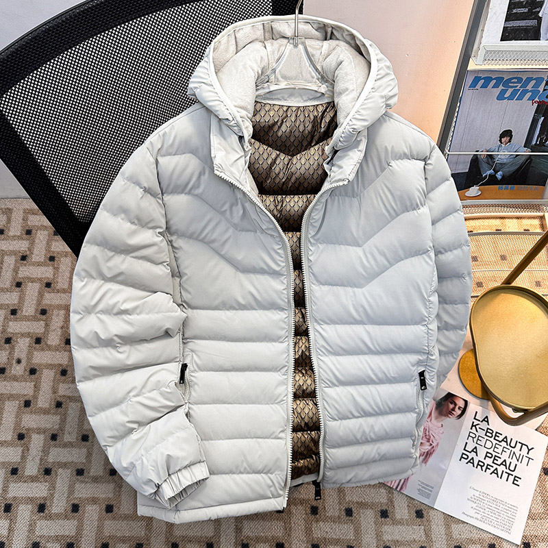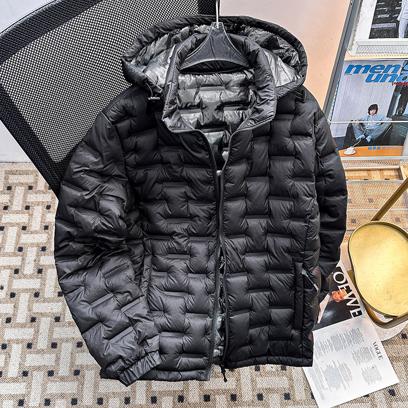 2025冬季新款潮牌连帽轻薄羽绒棉衣男士纯色百搭保暖外套防风棉袄
