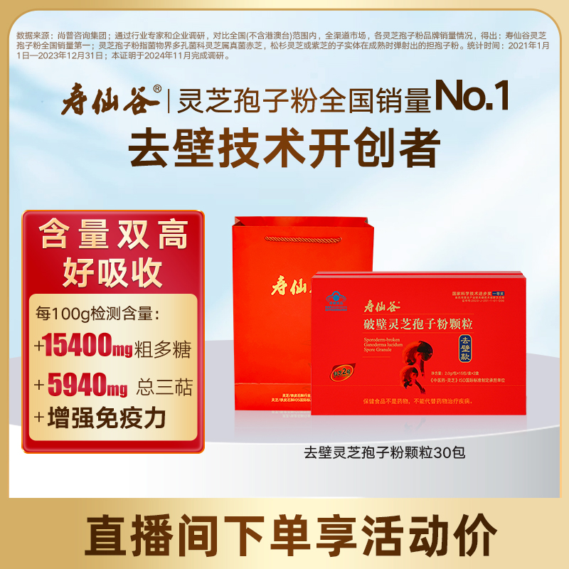 【直播爆款直降】寿仙谷去壁灵芝孢子粉颗粒180包破壁灵芝孢子粉
