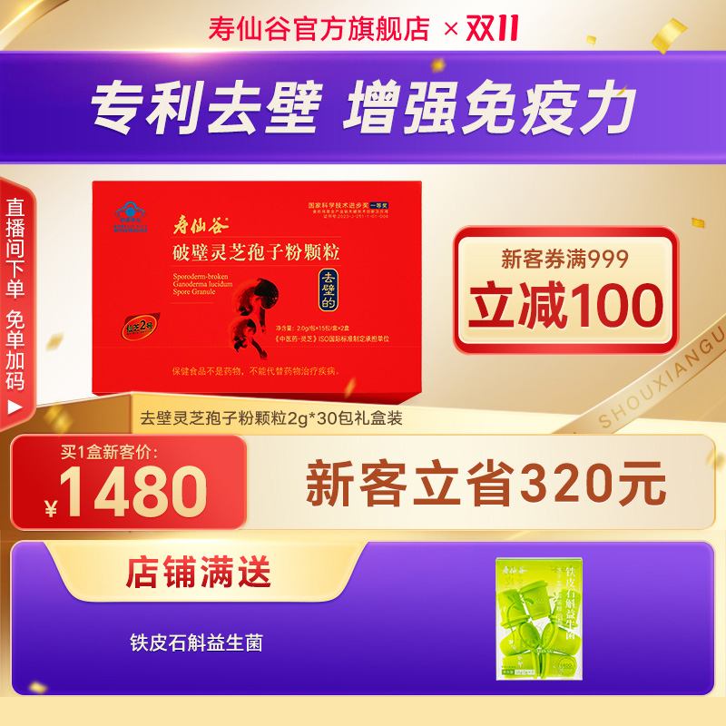 充值送160】寿仙谷去壁灵芝孢子粉颗粒2g*30包增强免疫官方旗舰店