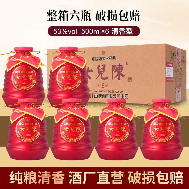 女儿陈封坛50白酒整箱特价坛装酒水500ml*6瓶53度粮食酒高度