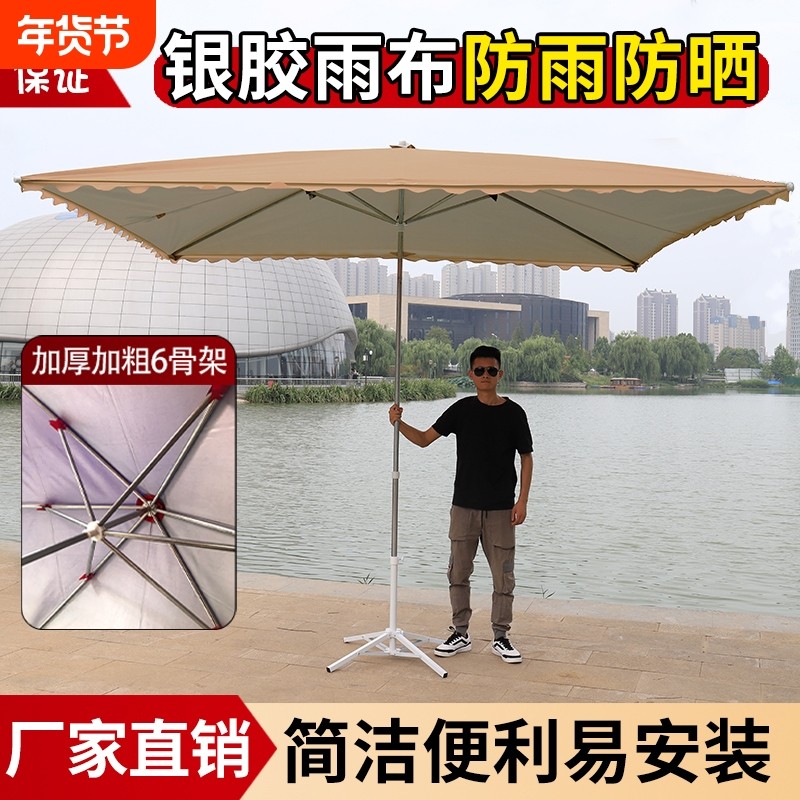 户外遮阳伞雨棚摆摊大伞折叠超大四方太阳伞晴雨两用地摊庭院雨伞