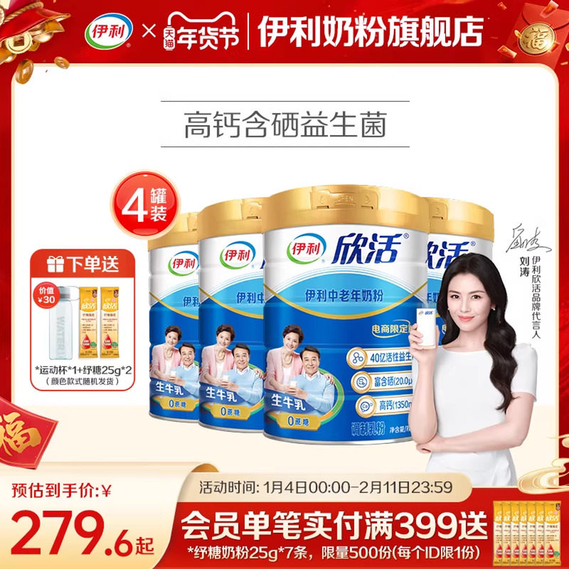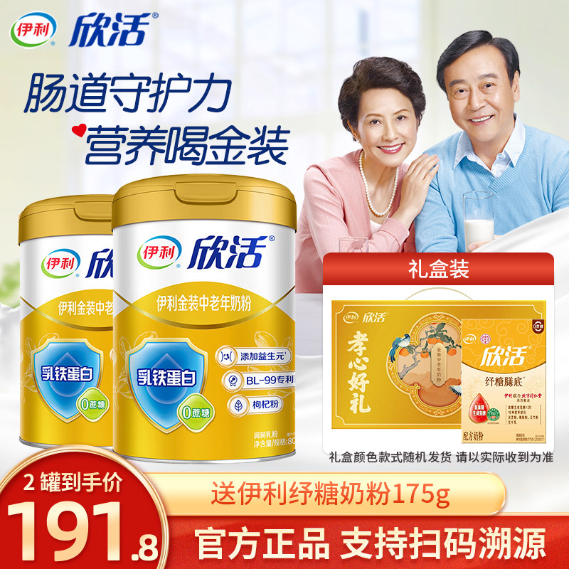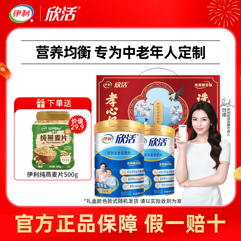 伊利旗舰店欣活中老年成人营养奶粉800g高钙0蔗糖益生菌官方正品