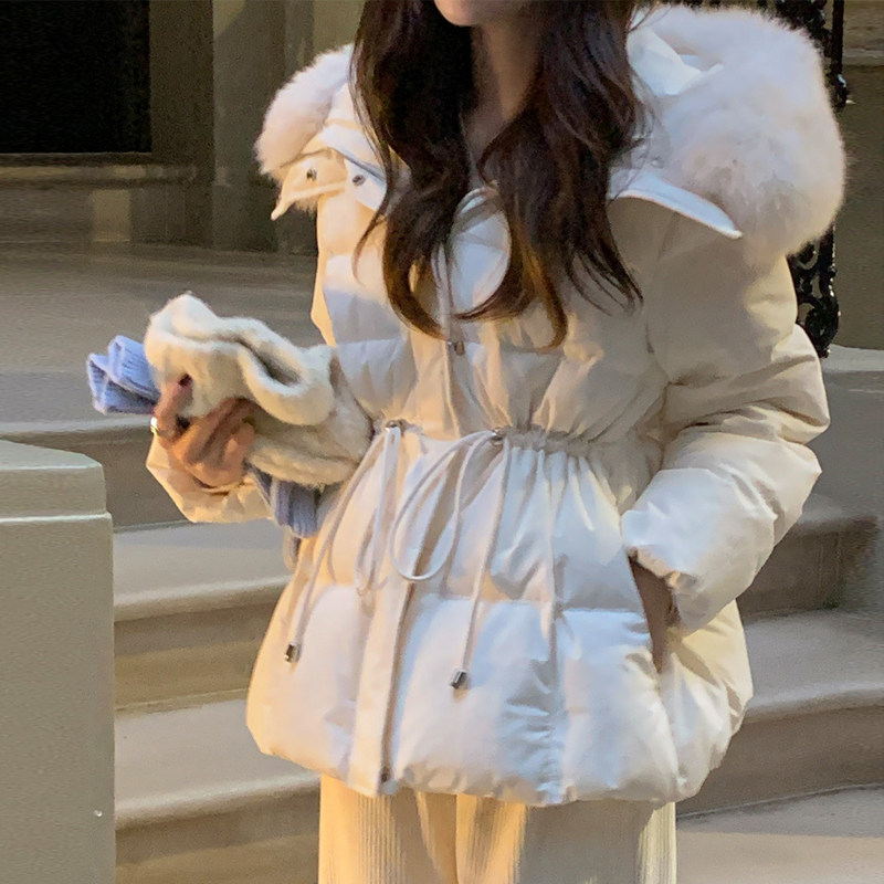 高端奢华 韩国Chic羽绒棉衣外套 连帽拉链大毛领抽绳韩版棉服外套