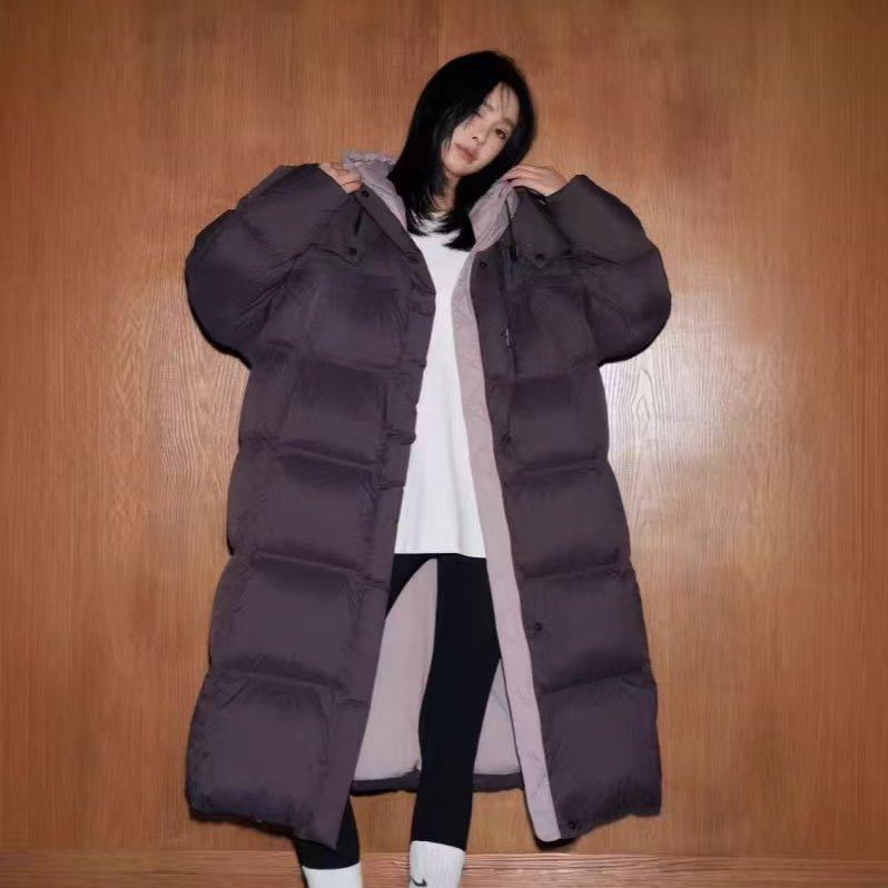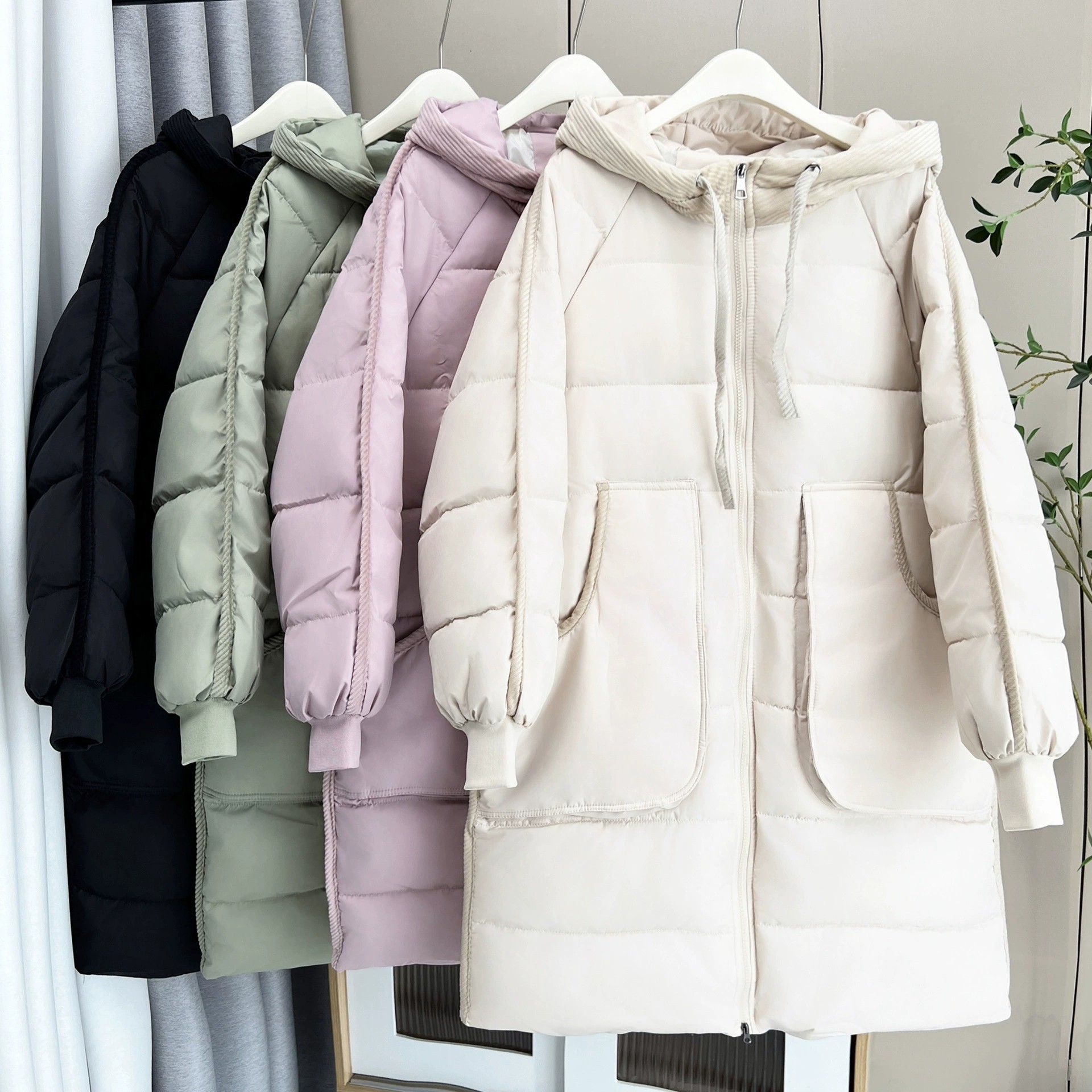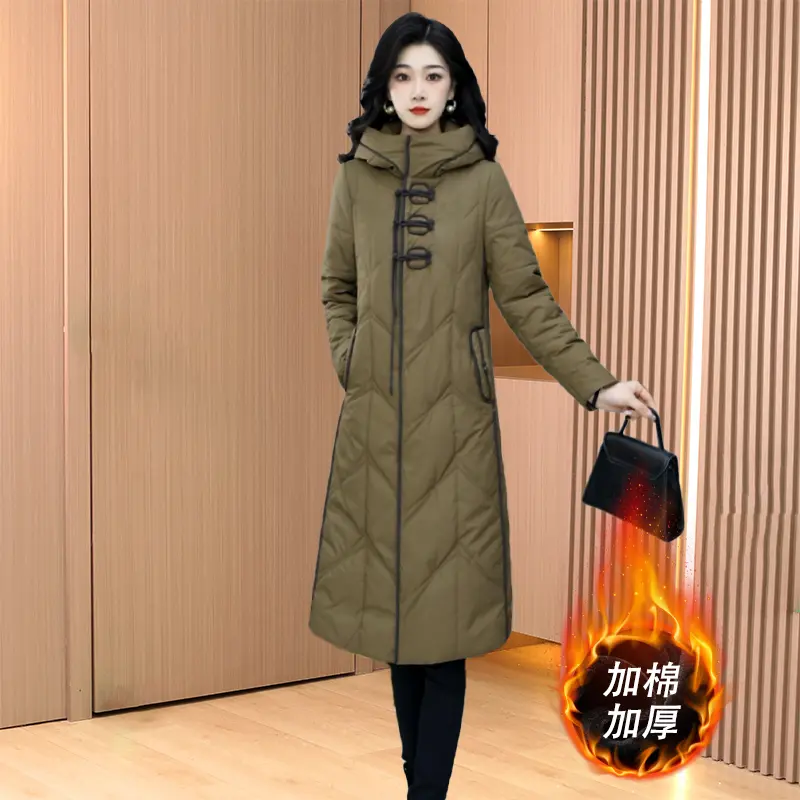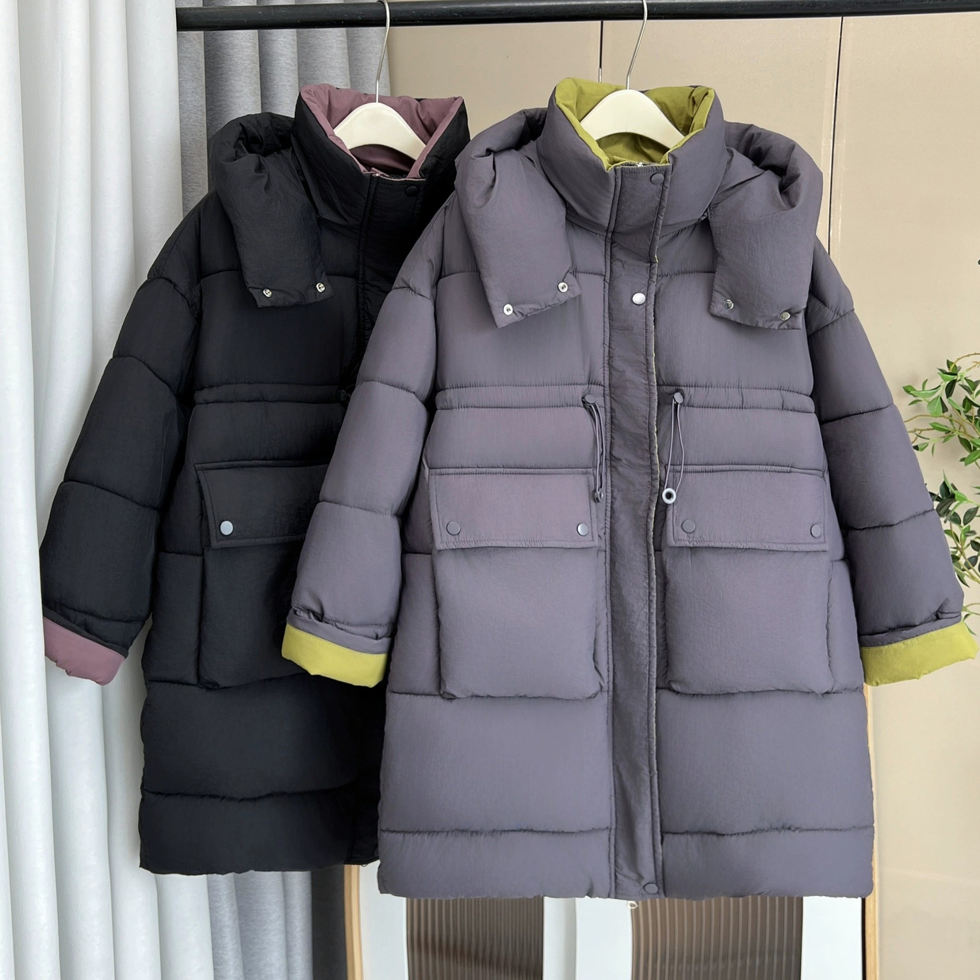 2025年冬季新款连帽过膝长款时尚保暖加厚棉服女休闲宽松棉衣外套