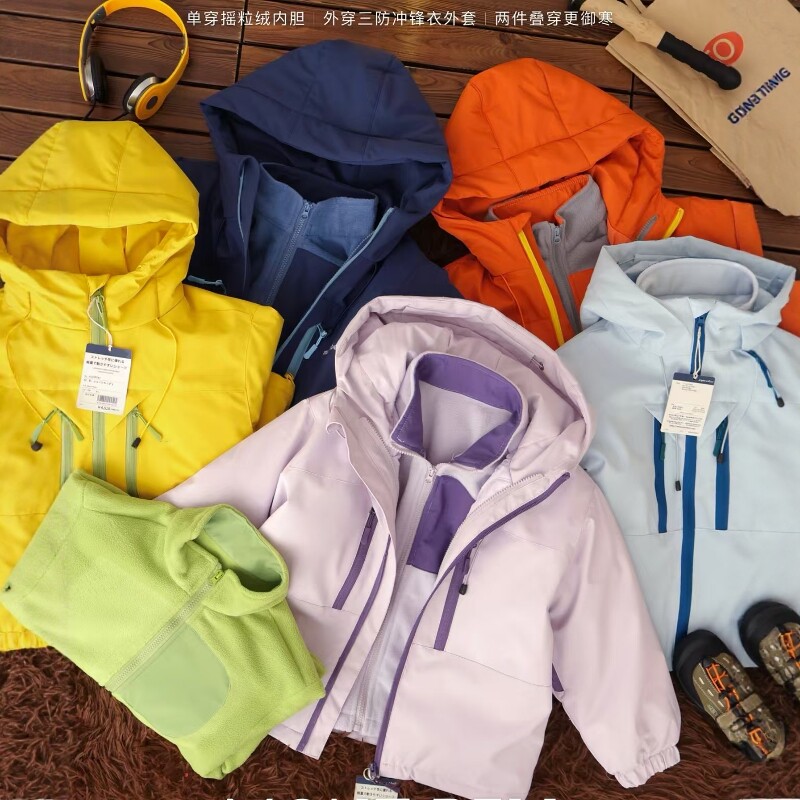 冬装中大童版三合一夹棉冲锋衣防风撞色潮童棉衣连帽外套保暖棉衣