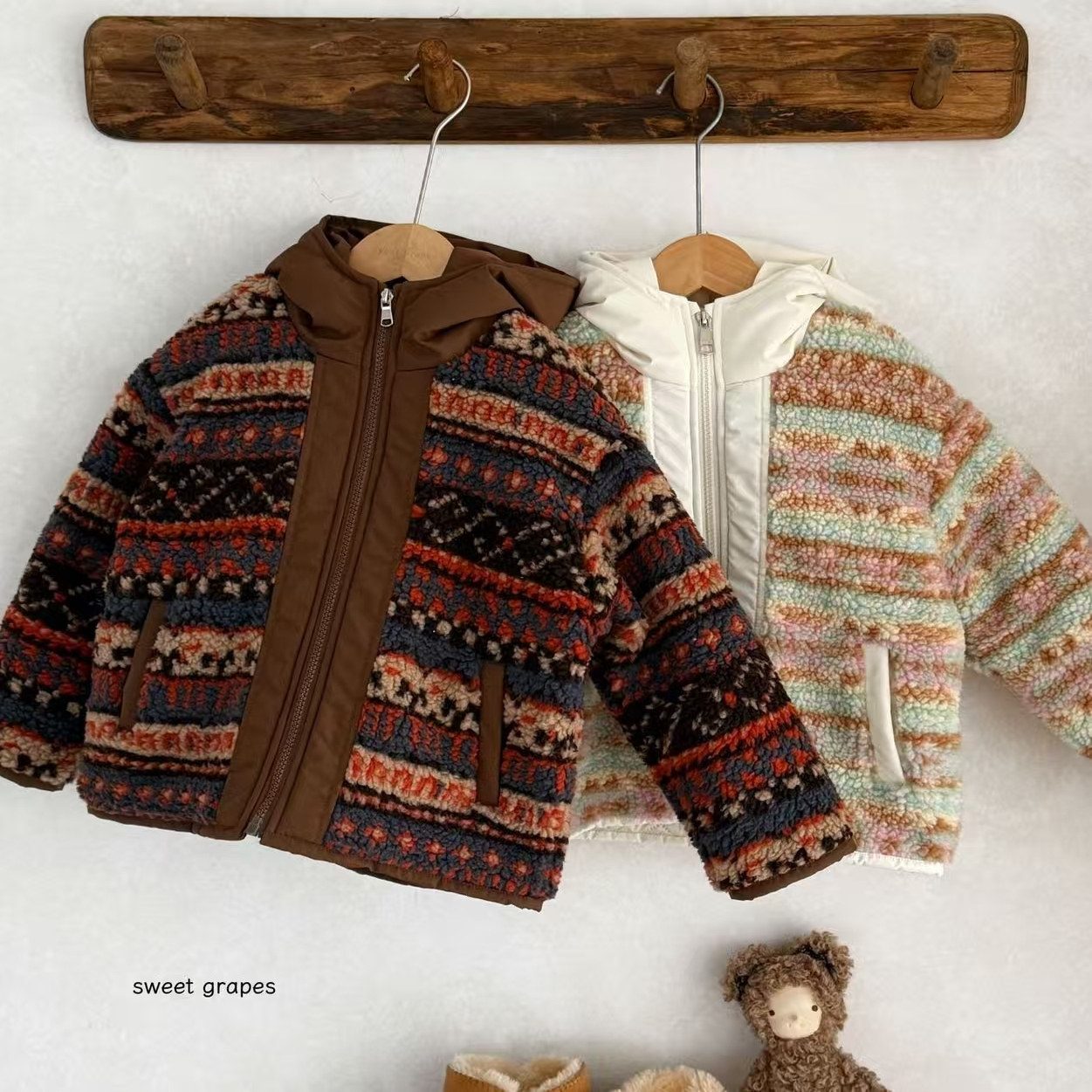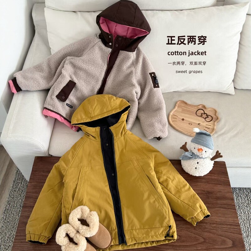 秋冬款费尔岛夹棉连帽棉服外套男女童保暖加绒外套中大童加厚外套