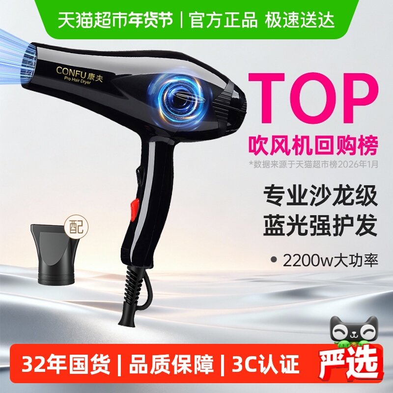 康夫电吹风机家用护发大风力大功率强风速干理发发廊电吹风筒296