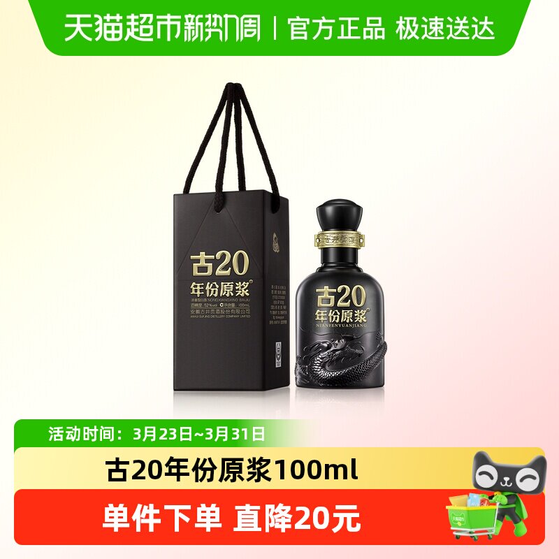 古井贡酒年份原浆古20-52度500ml*2瓶经典浓香国产白酒礼袋酒水