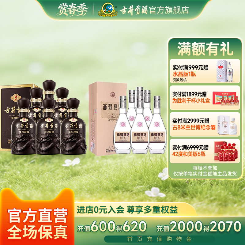 古井贡酒55度500mL*6瓶古5整箱+黄鹤楼53度500mL*6瓶清香经典H6