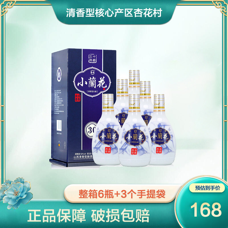 山西杏花镇53度小兰花酒30白酒整箱6瓶特价纯高粱清香型酒礼盒装