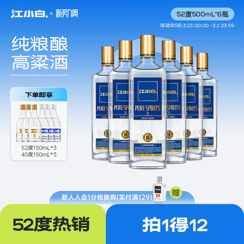 江小白金盖52度500ml*6瓶白酒整箱高粱酒纯粮食酒清香型白酒正品