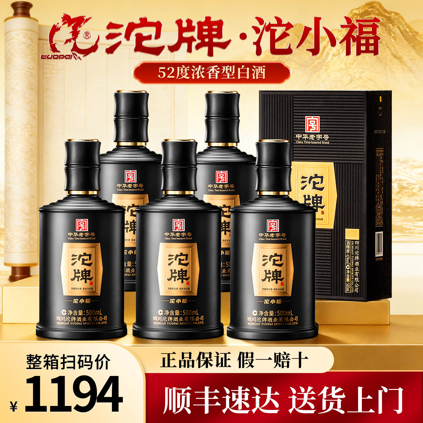 沱牌酒沱小福52度浓香型白酒500ml整箱6瓶粮食白酒礼盒装送礼