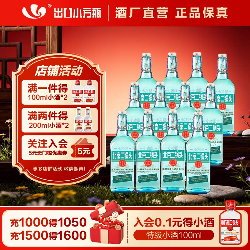 出口小方瓶牌北京二锅头翡翠42度清香型白酒整箱12瓶永丰官方旗舰