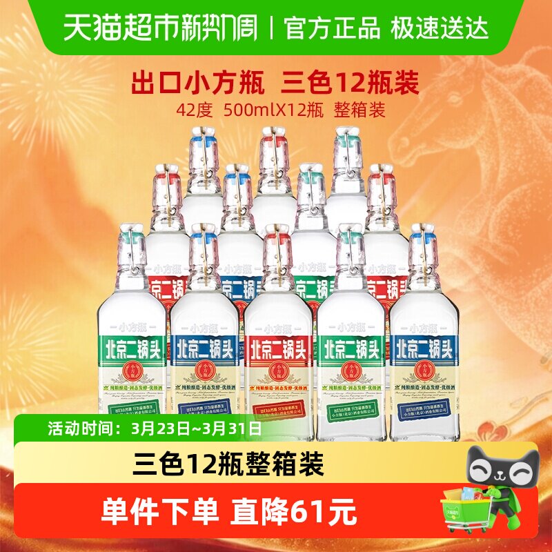 出口小方瓶 永丰牌 北京二锅头清香型白酒 42度经典(三色)整箱装