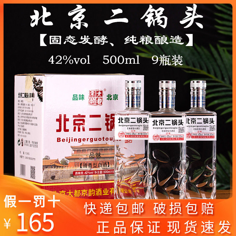 北京二锅头42度小方瓶清香型纯粮食酒500ml9瓶装白酒整箱特价包邮