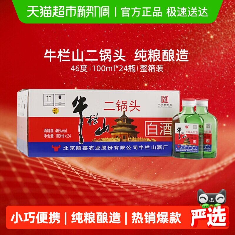 北京牛栏山小黑盖纯粮酒清香型56度100ml二锅头整箱40瓶 小瓶白酒