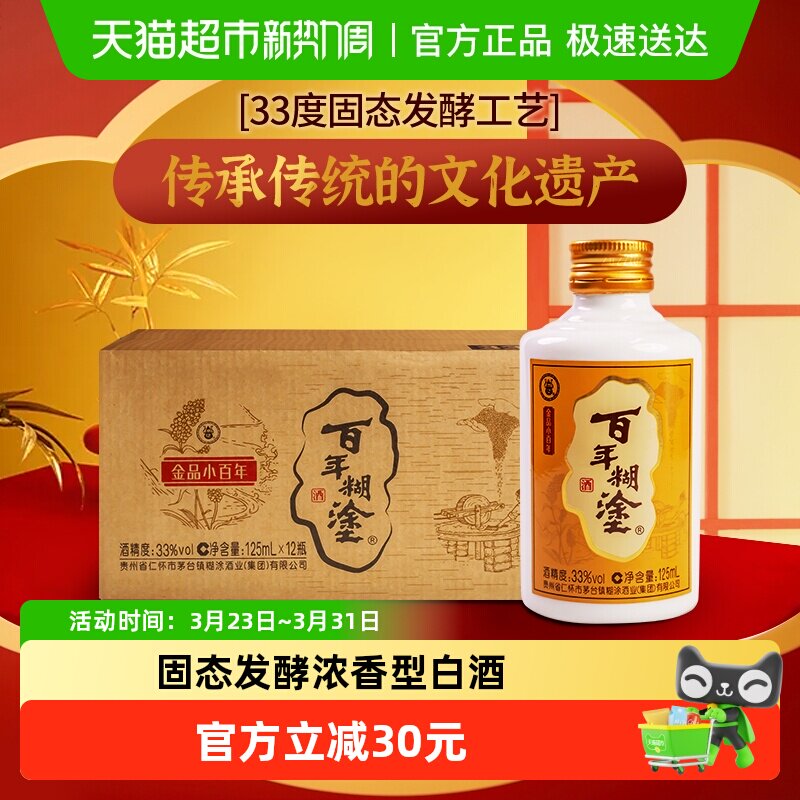 百年糊涂金品小百年33度浓香型125mL*12瓶贵州高粱小瓶装白酒整箱