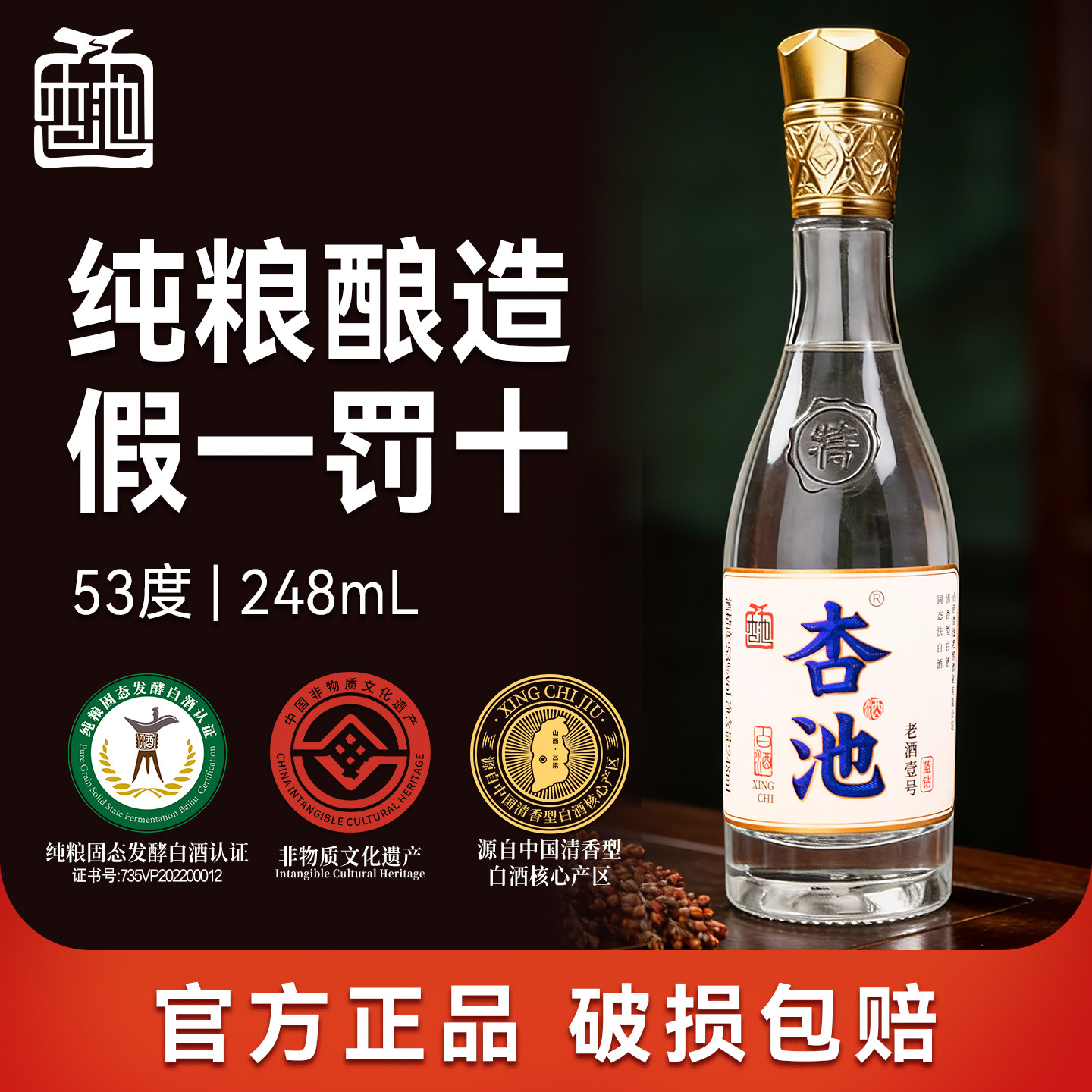 杏池便携小酒清香型玻璃瓶装53度纯粮食白酒整箱248ml旗舰店正品