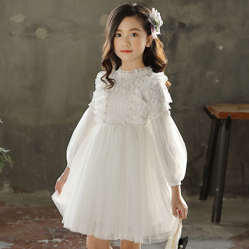 女童秋冬装2021中大童蕾丝连衣裙加绒公主裙蓬蓬沙裙礼服红色白色