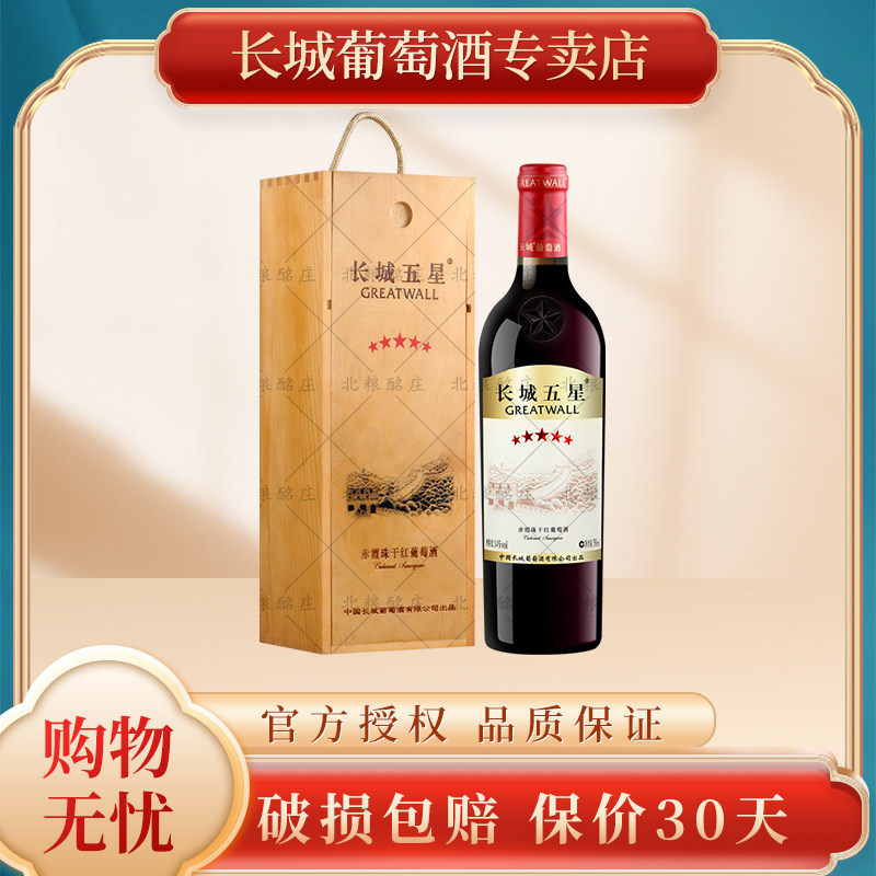 长城(GreatWall)星级红酒 中粮长城五星赤霞珠木盒装干红葡萄酒