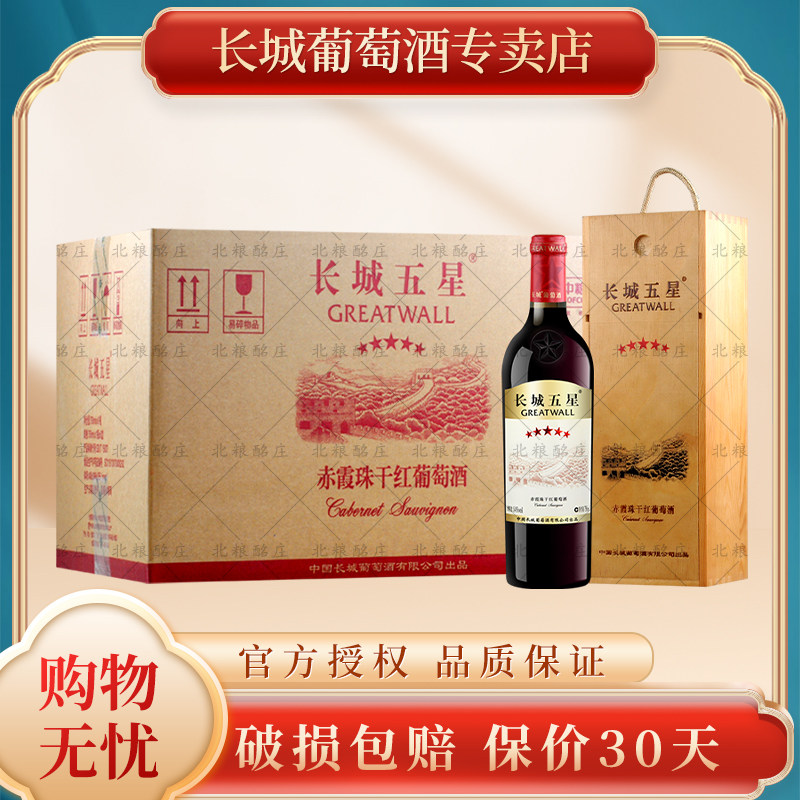 GreatWall长城五星赤霞珠干红葡萄酒木盒装750ml*6瓶整箱送礼红酒