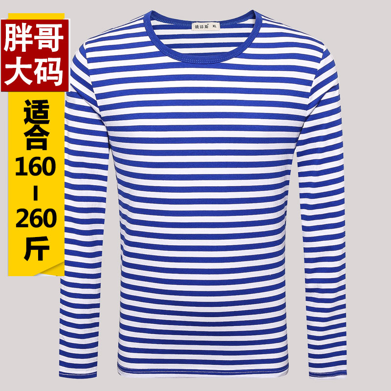 大码男装加肥加大宽松胖子长袖t恤条纹海魂衫肥佬秋装纯棉海军衫